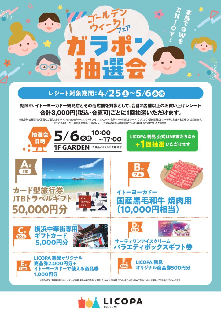 さらにLICOPA 鶴見 公式LINE友だちなら+1回抽選いただけます。